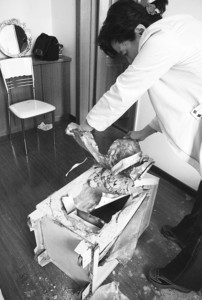 據(jù)房先生介紹,事發(fā)時(shí)休息室里共有兩臺(tái)保險(xiǎn)柜,另一臺(tái)保險(xiǎn)柜的背面也留有被撬過的痕跡,但由于該保險(xiǎn)柜比較堅(jiān)固才沒被小偷撬開。房先生用被盜的保險(xiǎn)柜存放現(xiàn)金等常用物品,而用另外一臺(tái)保存房證、存折等。房先生告訴記者,被盜保險(xiǎn)柜內(nèi)除了有幾萬元現(xiàn)金外,還有手機(jī)等其他貴重物品!斑@個(gè)小偷太囂張了! ”房先生說,“我辦公室里放了不少酒,還有巧克力等食品,小偷開了一瓶紅酒喝,而且吃了不少巧克力。 ”房先生認(rèn)為,大概是沒有工具打開紅酒,小偷便在窗臺(tái)上敲碎了酒瓶口。記者看到辦公室的地面上依然留有玻璃碎片和已經(jīng)干透了的紅酒痕跡。